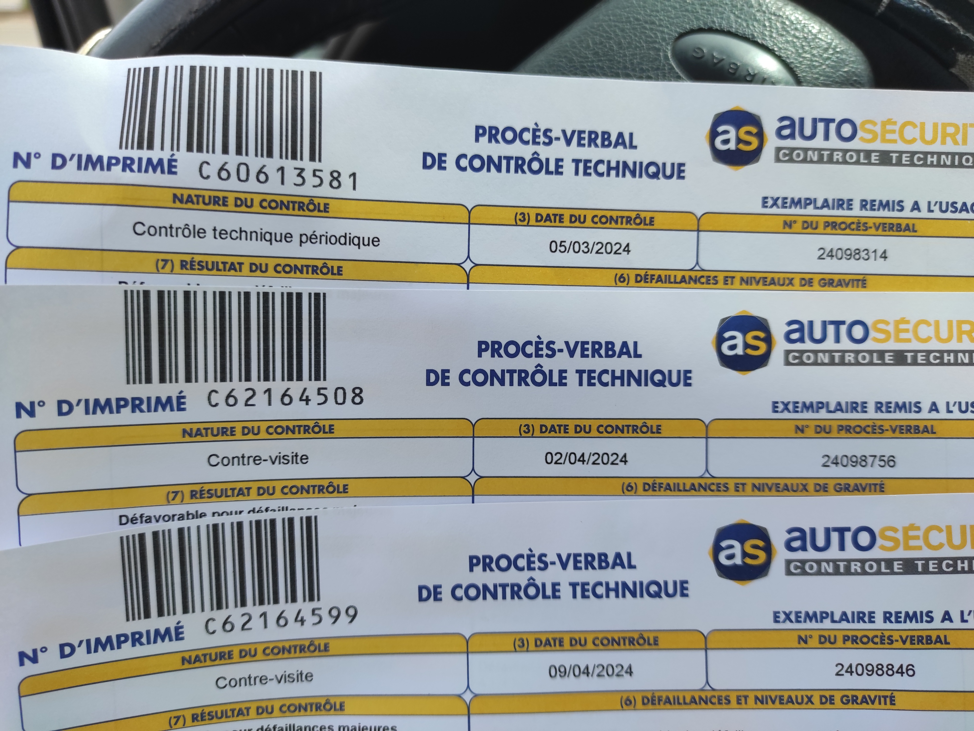 Contrôle technique avec contre-visite abusive. Vérification faite avec garagiste et un autre contrôleur, texte de loi à l'appui : aucun défaut majeur...