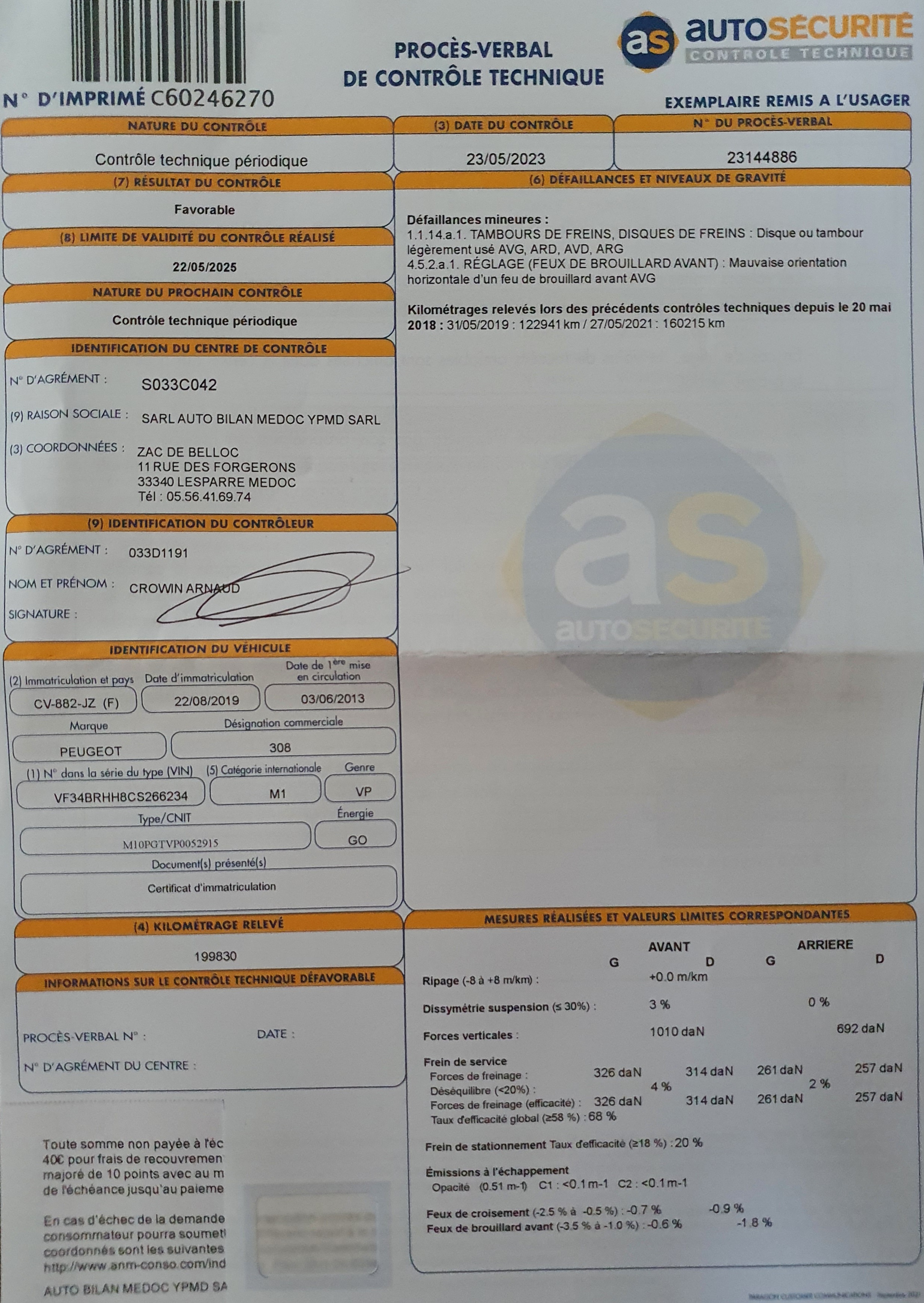 Mon expérience chez auto sécurité Lesparre-Médoc : au mois de Mai, je me rends à mon rendez-vous pour passer le contrôle technique de mon véhicule. J'observe de loin le contrôleur et lui fait remarquer qu'il est très brusque avec ma voiture. Rien à signaler sur mon contrôle et en démarrant ma voiture, les boutons abs, eps sont allumés. J'en fait part immédiatement au monsieur qui me dit qu'ils vont s'éteindre. En roulant le soir avec mon véhicule, je m'aperçois que le régulateur de vitesse ne fonctionne plus, 3 vitres sur 4 se lèvent... Je reviens dès le lendemain pour voir le responsable, il me dit qu'il faut s'adresser par mail au siège national. C'est bien entendu ce que je fais et là, un responsable me dit, il faut le prouver et faire passer un expert.... J'ai donc fait passer la valise sur mon véhicule par le biais d'un ami et défaut capteur abs eps arrière droit défaillant et capteur arraché à l'avant. photos à l'appui Je transmets au responsable national et contacte auto sécurité de Lesparre-Médoc, ils ne reconnaissent pas de nouveau leur erreur et se retournent la responsabilité chacun. Je souhaite publier cet avis pour protéger autrui DES ACTES DE MAUVAISE FOI .