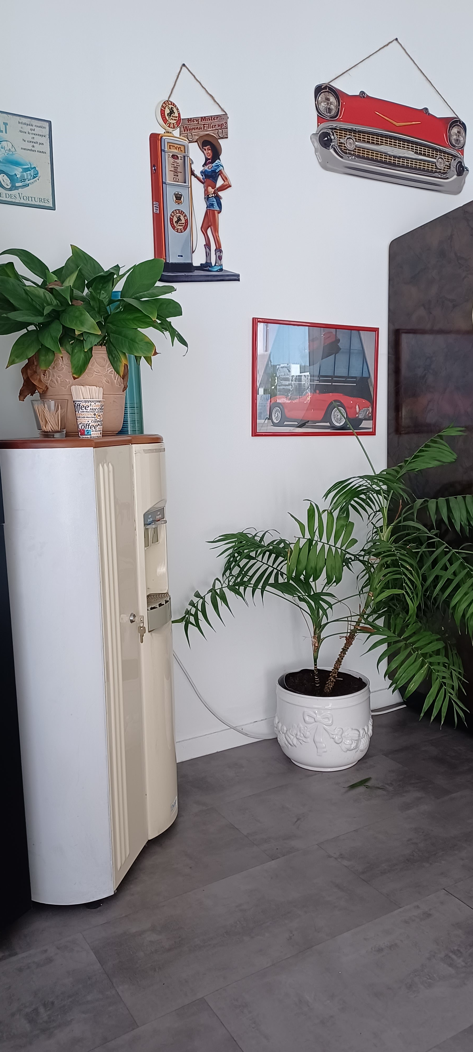 Excellent accueil, passage rapide et salle d'attente avec café et décoration vintage.
